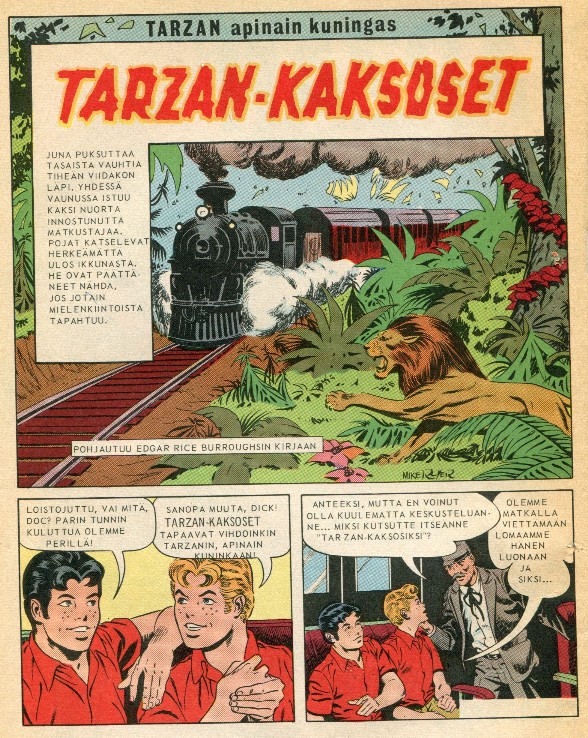 Tarzan - Apinoiden Kuningas Tarzan-Kaksoset 21 sivua Alkuperä: Tarzan 196 Tarzan and the Tarzan Twins Piirtäjä: Mike Royer Teksti: Gaylord DuBois
