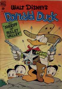 Alkuperäinen kansi: Four Color 199 (1948) Sheriff of Bullet Valley Julkaistiin Suomessa Aku Ankan Juhlasarjat 5