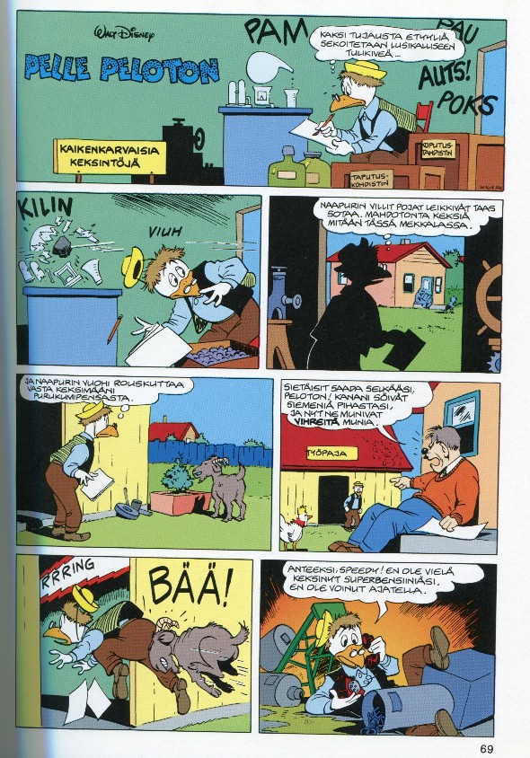 Aku Ankan Juhlasarjat 71997Suomenkielinen ensipainos:Sivu 69Kaikenkarvaisia Keksintöjä4 sivuaUncle Scrooge 14 (1956)Inventor of AnythingPiirtäjä: Carl Barks