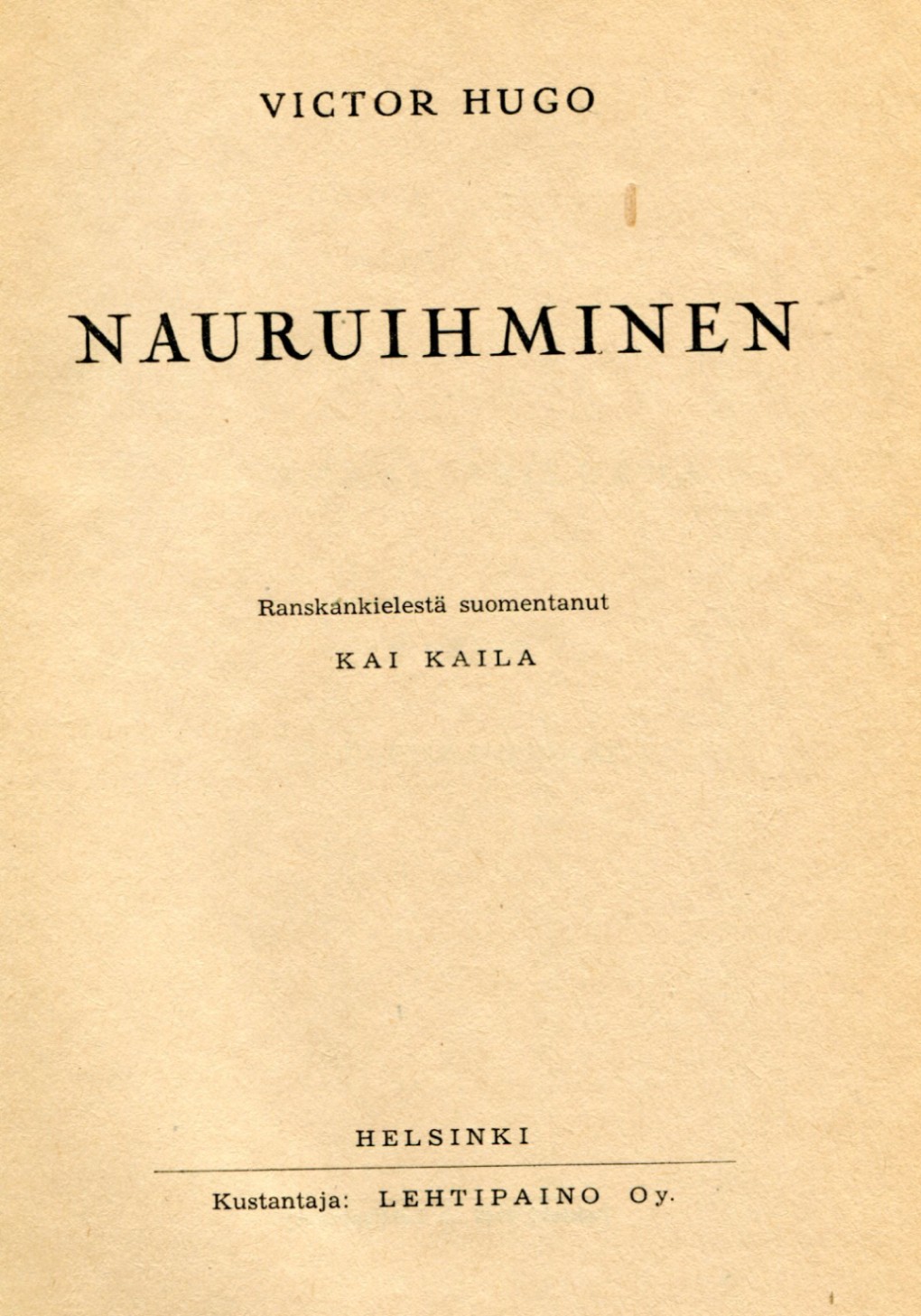 L' Homme qui rit (1869) (Mies, joka nauroi) Kirjailija: Victor Hugo Sivuja: 735 Suomentaja: Kai Kaila Kustantaja: Lehtipaino Oy