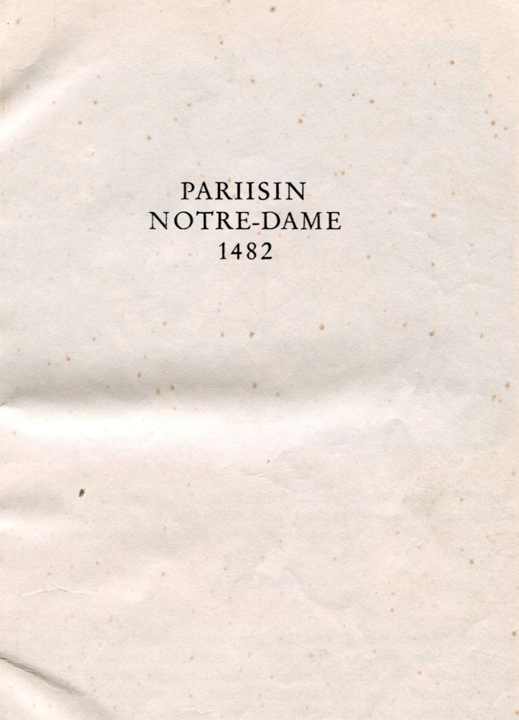 Notre-Dame de Paris (1831) Kirjailija: Victor Hugo Sivuja: 512 Kuvitus: Fortune Méaulle Suomentaja: ? Kustantaja: Saaristo & Kn:it