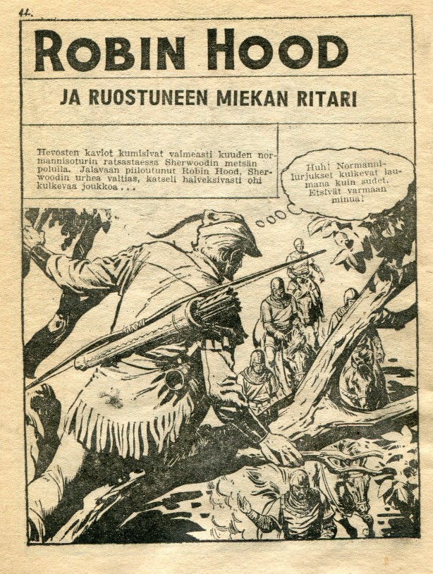 2 (21 sivua): Robin Hood ja Karkoitettu Ritari. Robin Hood & the Exiled Knight. Kuvitus: Reg Bunn Teksti: V.A.L.Holding