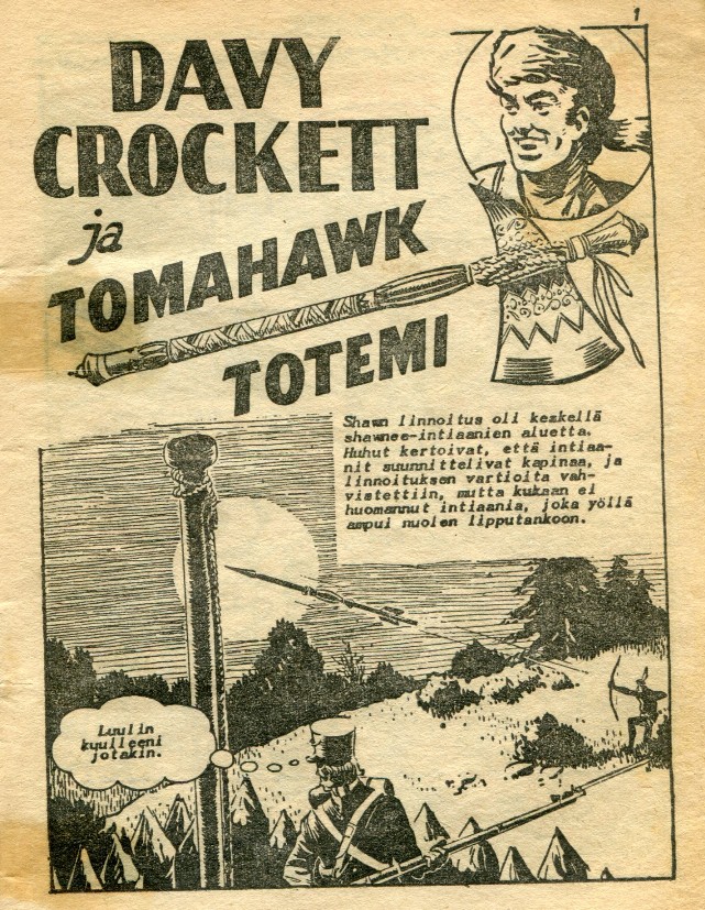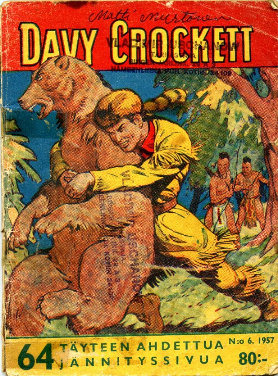 Davy Crockett 6 1957Cowboy Comics 199 (1957)Kansi: James E.McConnellSisäkannet:Hurja Bill HickockTekstia) Davy Crockett ja Tomahawk-Totemi64 sivuaDavy Crockett & the Tomahawk TotemPiirtäjä: Terry Aspin
