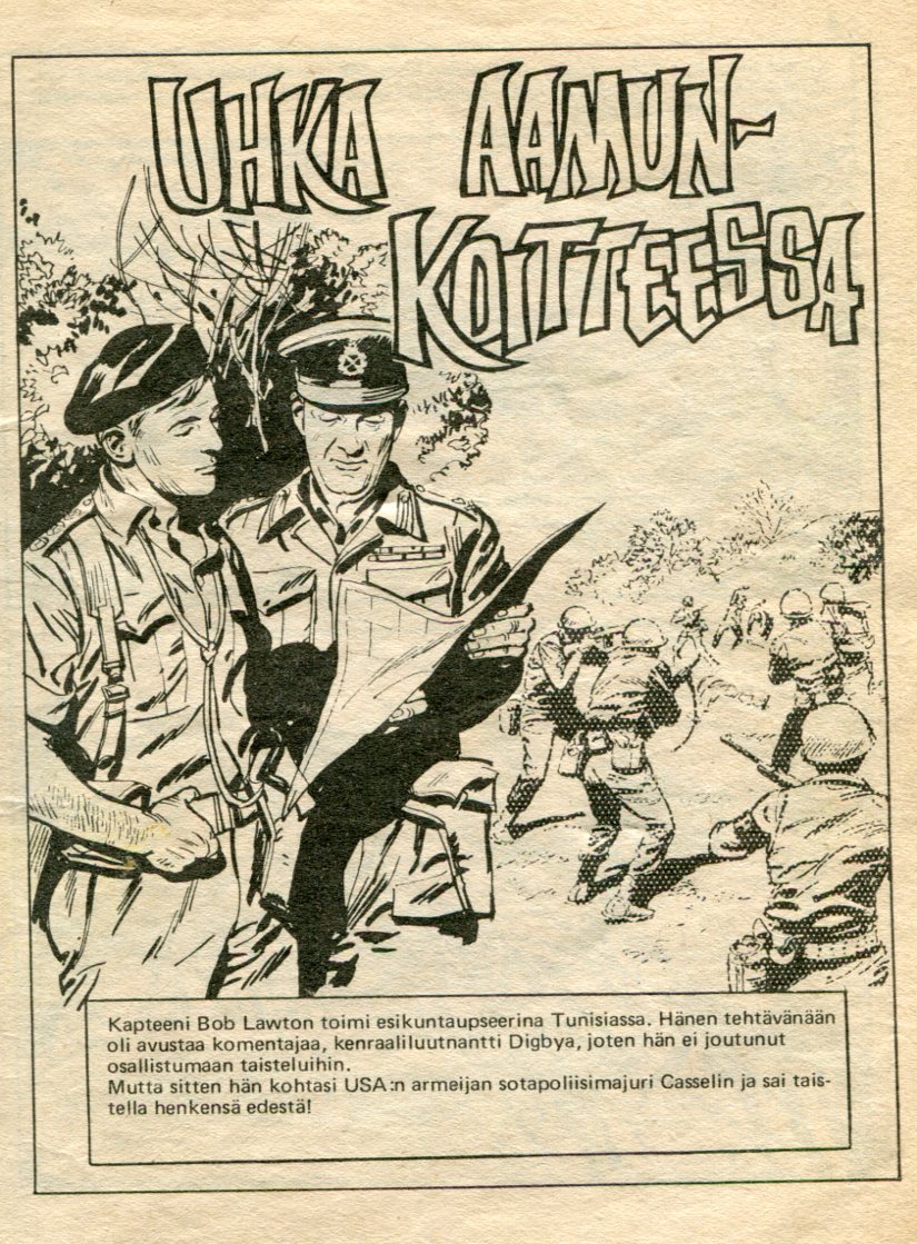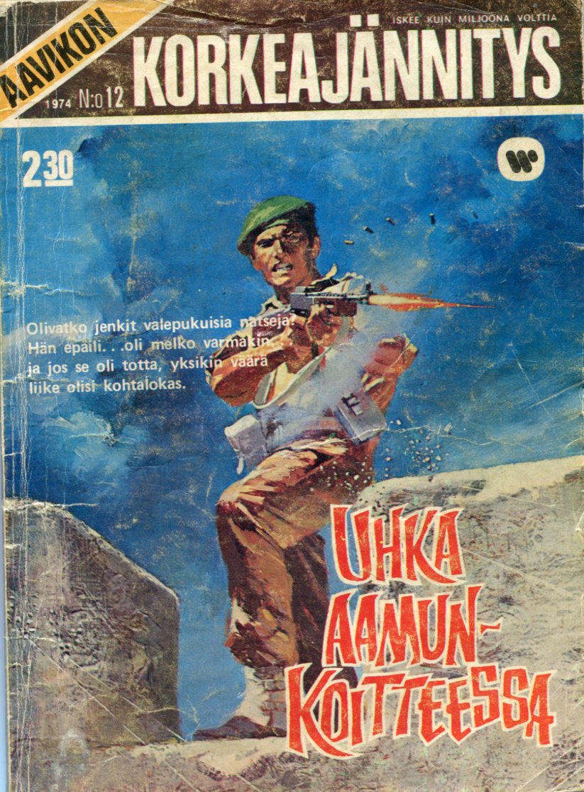 Aavikon Korkeajännitys 121974Uhka Aamun KoitteessaKannen piirtäjä: Jordi PenalvaUhka Aamun KoitteessaAlkuperä: Commando 501 (1970)Danger at Dawn(alkup nimi: Hell Pit)Piirtäjä: MartinTeksti: Allan