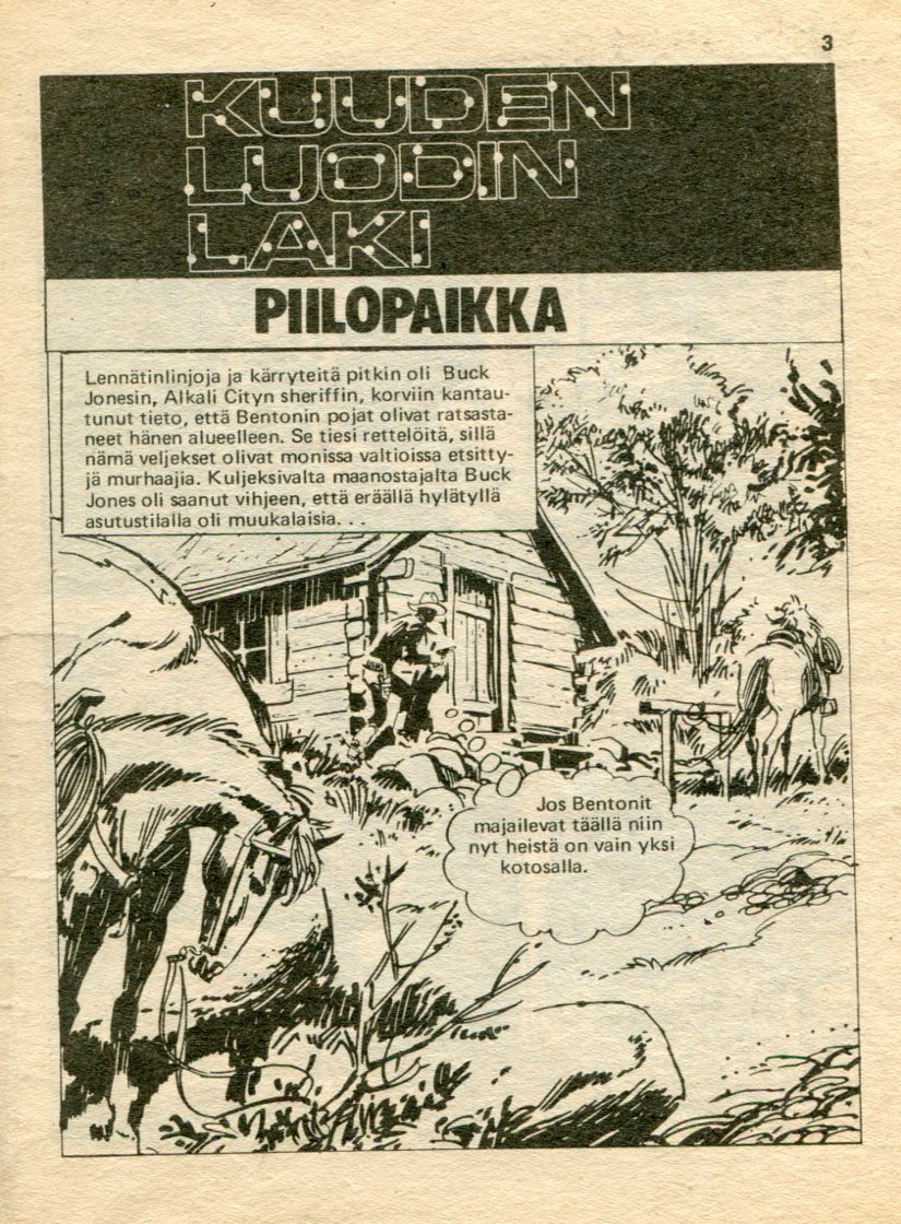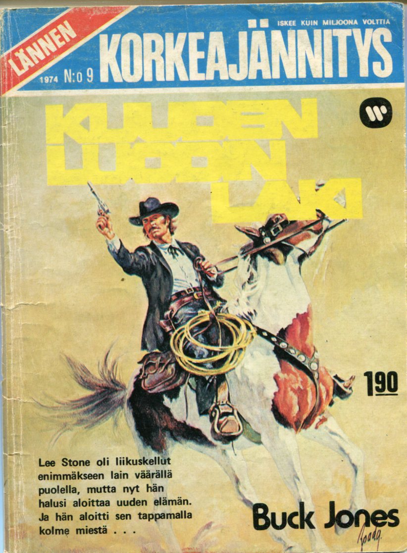 Lännen Korkeajännitys 91974Kuuden Luodin LakiKansi: VÄÄRÄ - TuntematonKuuden Luodin LakiStarring: Buck JonesAlkuperä:Cowboy Picture Library 430 (1961)Gun PLayPiirtäjä: Jose Bielsa