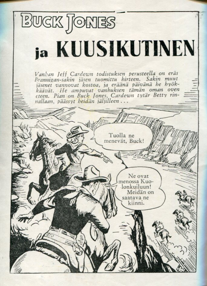 Buck Jones ja Kuusikutinen (22 sivua) The Six-Gun Justice of Buck Jones Cowboy Comics 61 (1952) Piirtäjä: Vic Anderson Teksti: A.W.Henderson