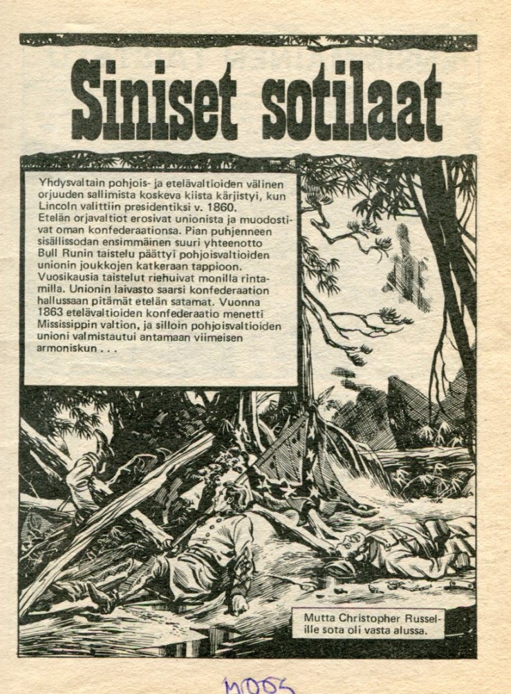 Siniset Sotilaat Alkuperä: Cowboy Picture Library 456 (1962) The Fighting Blues and Greys Piirtäjä: Gerry Embleton
