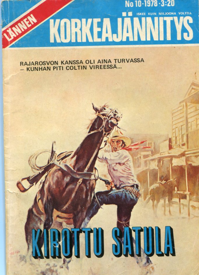 Lännen Korkeajännitys 101978Kirottu SatulaKansi: VÄÄRÄ - TuntematonKirottu SatulaAlkuperä:Lone Rider Picture Library 11Saddle of DeathPiirtäjä: ?Alkup kansiPiirtäjä: ?