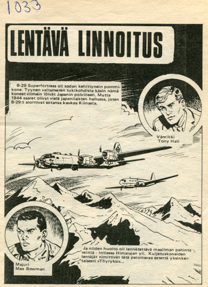 Lentävä Linnoitus Alkuperä: Commando 1033 (1976) Superfort! Piirtäjä: Maidagan Teksti: Alan Hebden