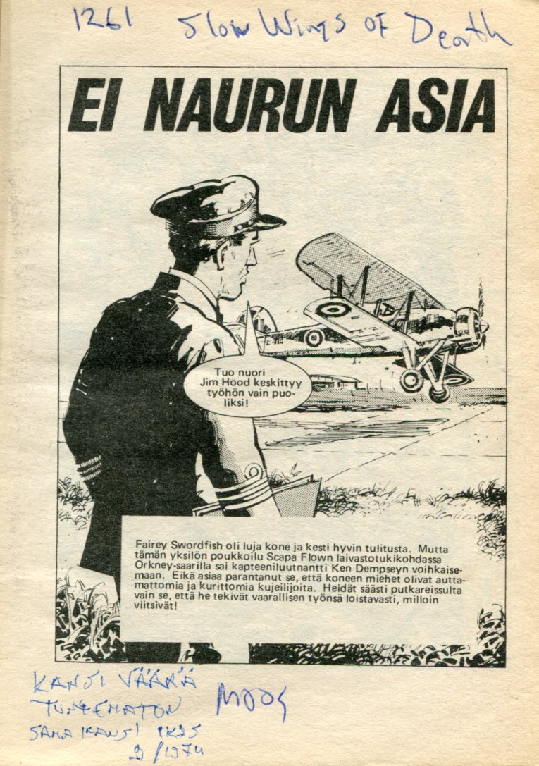 Ei Naurun Asia Alkuperä: Commando 1261 (1978) Slow Wings of Death Piirtäjä: Gordon Livingstone Teksti: Bryan Perrett
