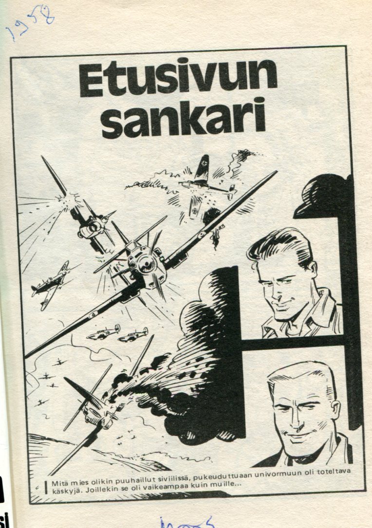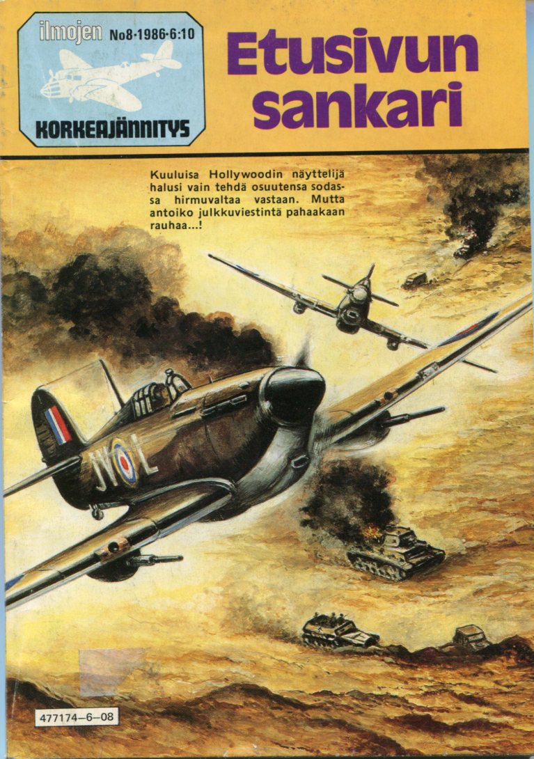 Ilmojen Korkeajännitys 81986sivu 3Etusivun SankariKannen Piirtäjä: PhilpottKannen Lentokone: Hurricane Mk IVEtusivun SankariAlkuperä: Commando 1958 (1986)Headline HeroPiirtäjä: NebotTeksti: Staff