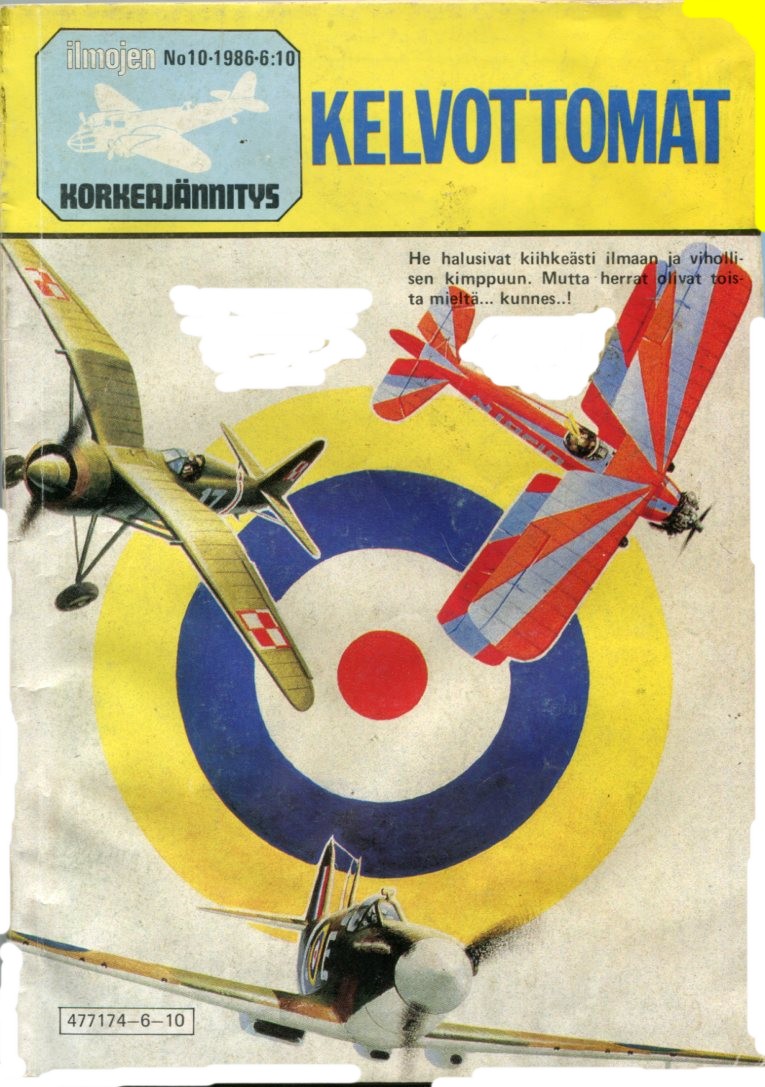 Kelvottomat Kannen Piirtäjä: Ian Kennedy Kannen Lentokone: PZL P-11 & ? & Spitfire