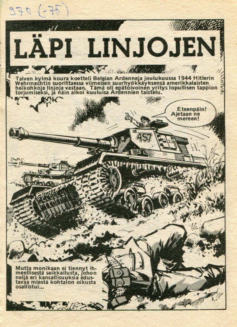 Korkeajännitys 141976sivu 3Läpi LinjojenKannen Piirtäjä: Ian KennedyLäpi LinjojenAlkuperä: Commando 970 (1975)Rescue MissionPiirtäjä: Gordon LivingstoneTeksti: Alan Hebden