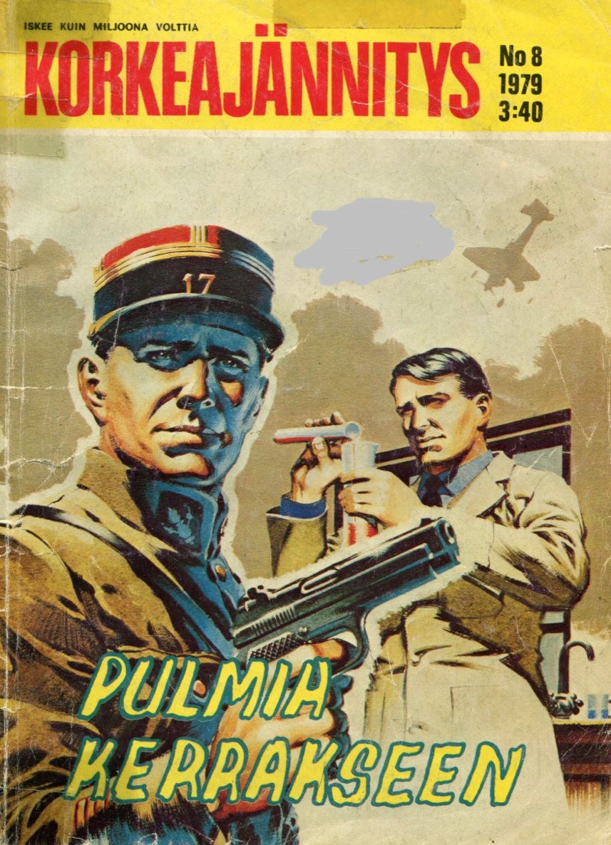 Korkeajännitys 81979sivu 3Pulmia KerrakseenKannen piirtäjä: Ian KennedyPulmia KerrakseenAlkuperä: Commando 1220 (1978)Dangerous DoublePiirtäjä: Gordon LivingstoneTeksti: C.G.Walker