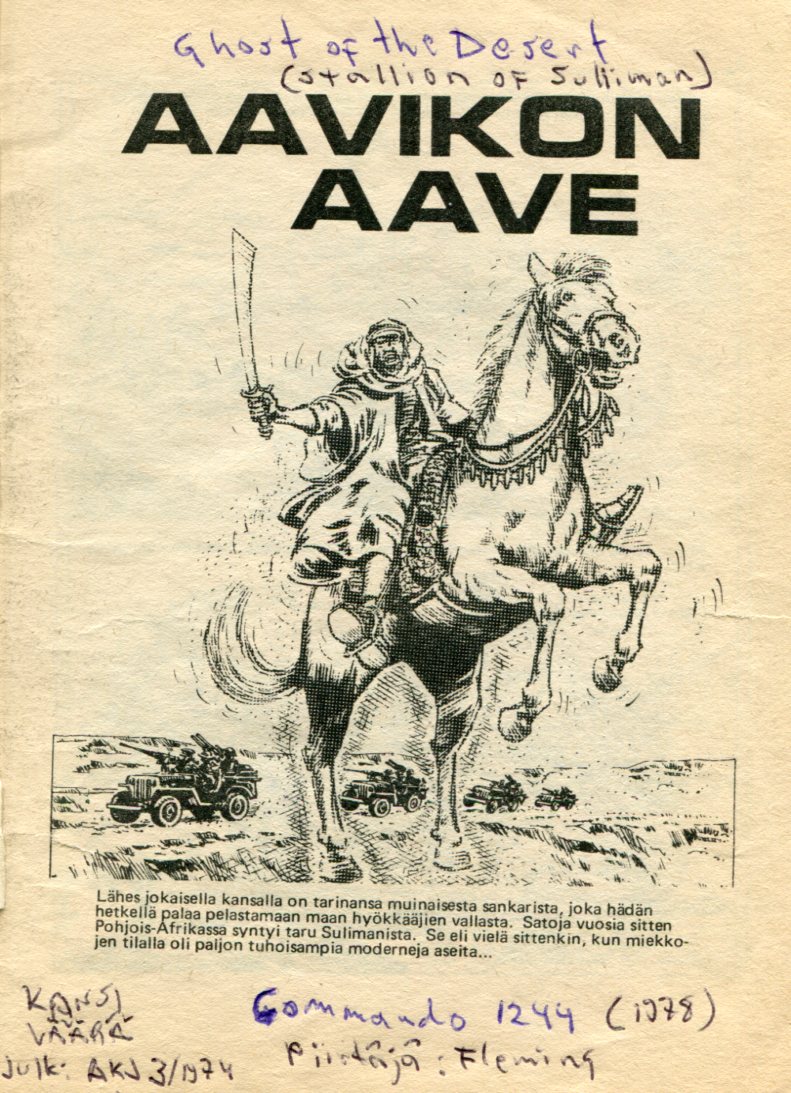 Aavikon Aave Commando 1244 (1978) Ghost of the Desert Aiempi nimi: Stallion of Sulliman Piirtäjä: Fleming Teksti: C.G.Walker