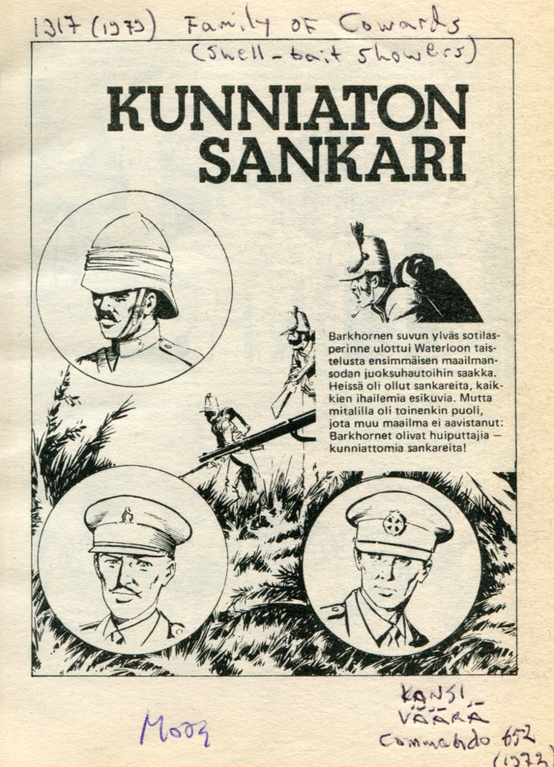 Kunniaton Sankari Commando 1317 (1979) Family of Cowards Aiempi nimi: Shelle-Bait Showers Piirtäjä: Llops Teksti: C.G.Walker