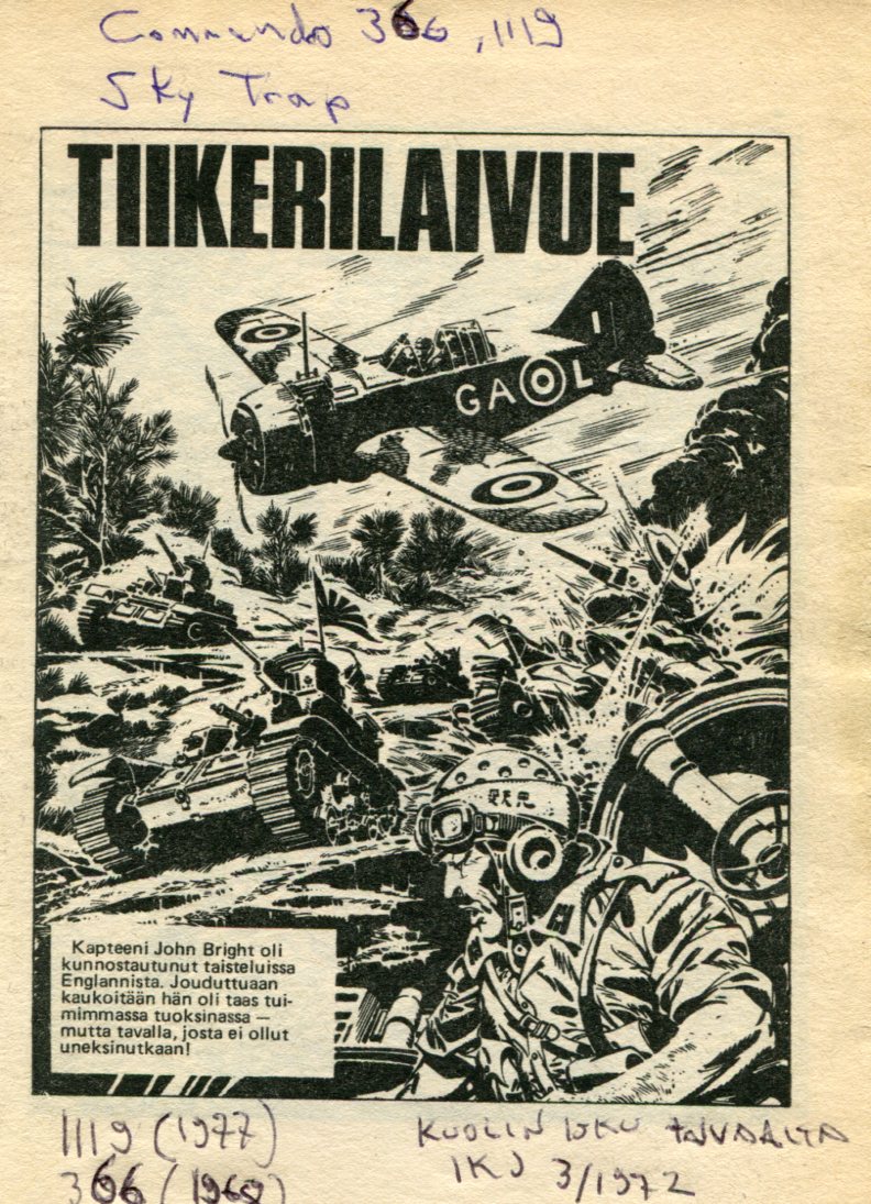 Tiikerilaivue Alkuperä: Commando 366 (1968) Commando 1119 (1977) Sky Trap Piirtäjä: Auraleon Teksti: Wilkinson