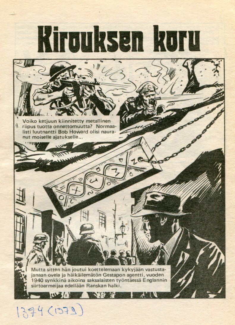 Korkeajännitys 201980Kirouksen KoruPiirtäjä:Ian KennedyKirouksen KoruAlkuperä: Commando 1374 (1979)Act of the DevilAiempi nimi: The Devil's TalismanPiirtäjä: IbanezTeksti: Feldwick