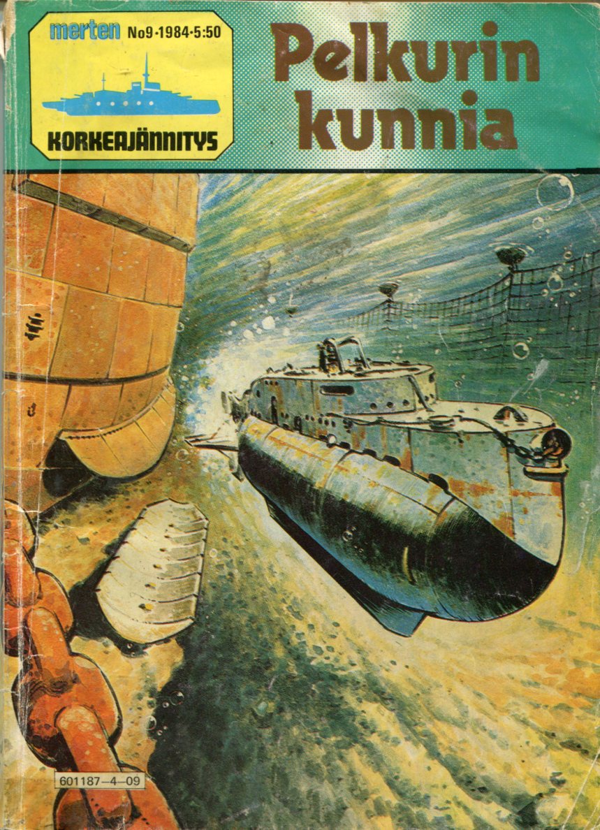 Merten Korkeajännitys 91984Pelkurin KunniaKannen piirtäjä:Jeff BevanPelkurin KunniaAlkuperä: Commando 1754 (1983)Mighty MidgetPiirtäjä: NebotTeksti: Crowther