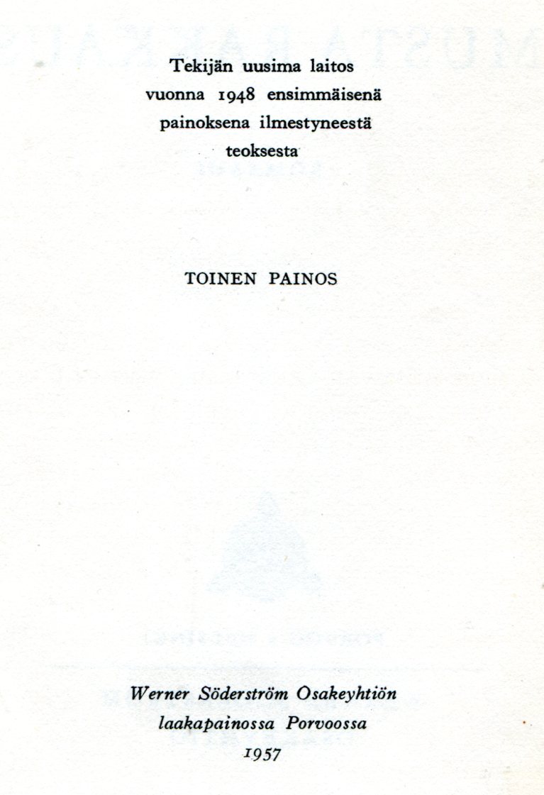 Täällä Pohjantähden Allaosa 1 (1959) (21. painos 1971)osa 2 (1960) (15. painos 1971)osa 3 (1962) (10. painos 1971)Kirjoittanut: Väinö LinnaKustantaja: WSOY