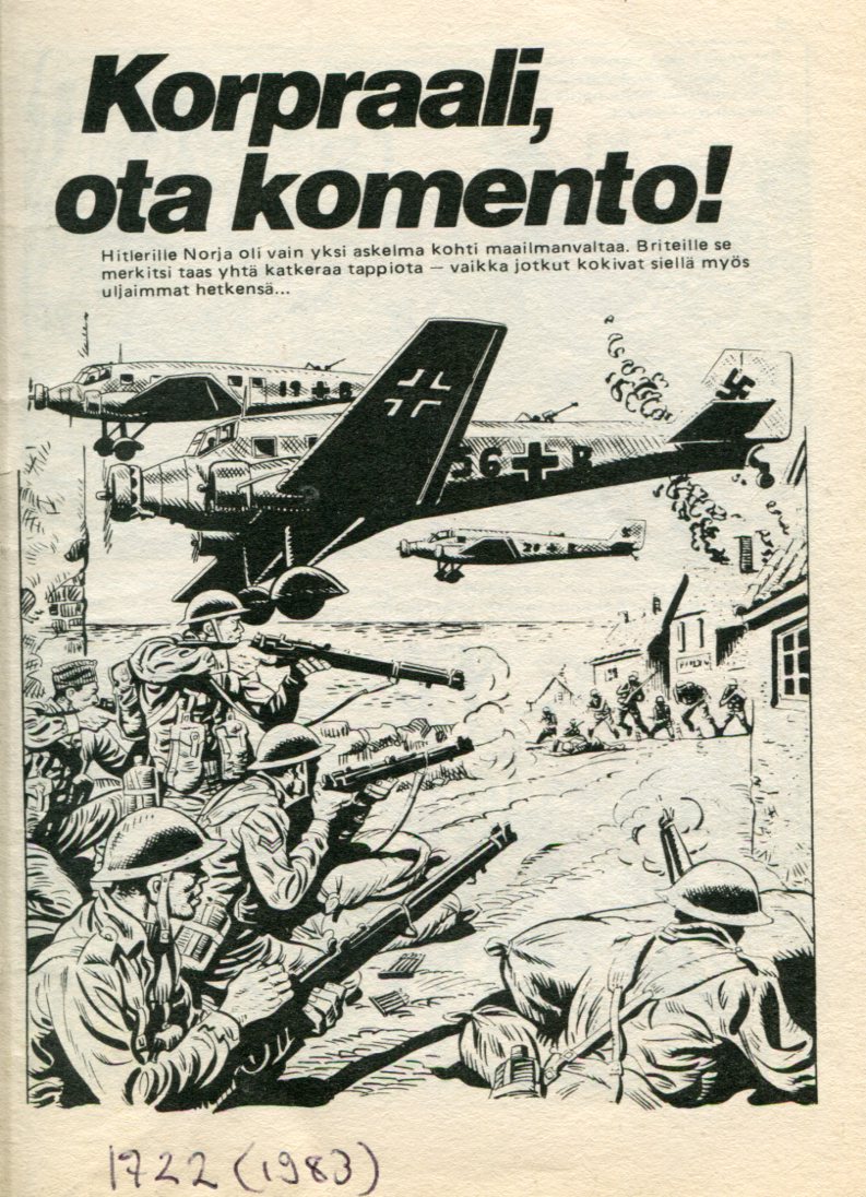 Korkeajännitys 101984sivu 3Korpraali, Ota Komento!Kannen Piirtäjä:Ian KennedyKorpraali, Ota Komento!Alkuperä: Commando 1722 (1983)Take Over, Corporal!Piirtäjä: EscandellTeksti: Staff