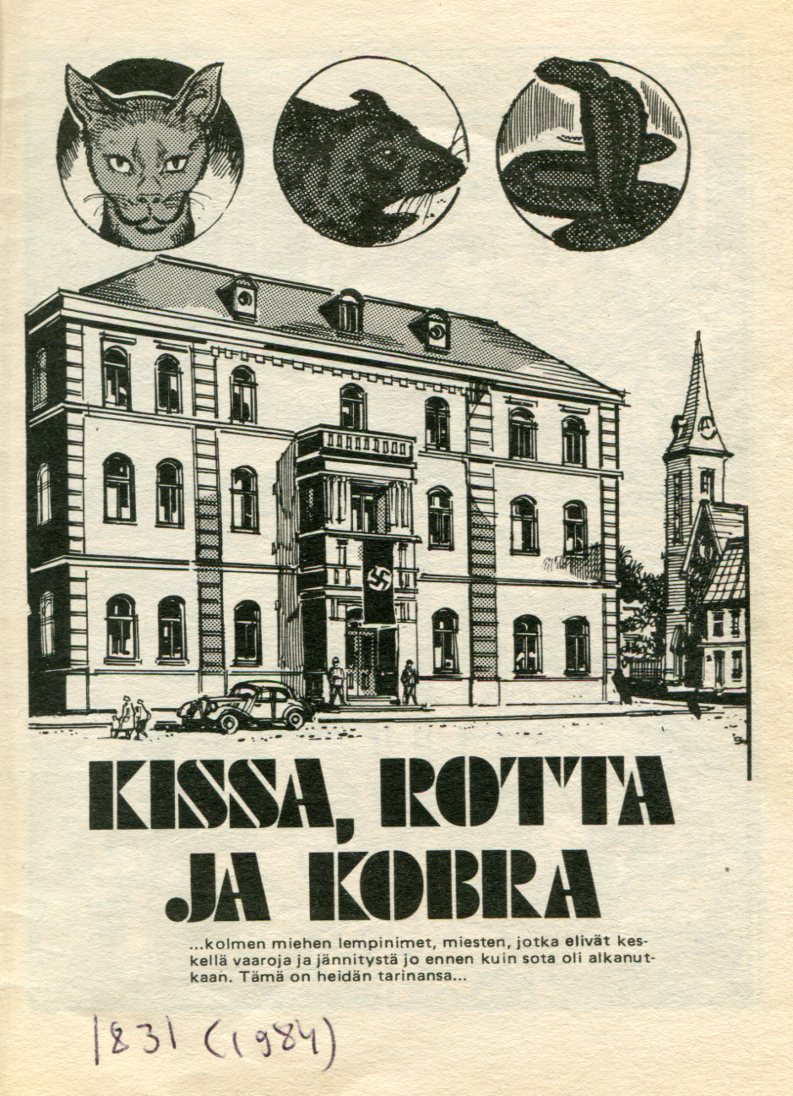 Korkeajännitys 121985sivu 3Kissa, Rotta ja KobraKannen Piirtäjä:Jeff BevanKissa, Rotta ja KobraAlkuperä: Commando 1831 (1984)The Cat, the Rat and the CobraPiirtäjä: Gordon LivingstoneTeksti: C.G.Walker