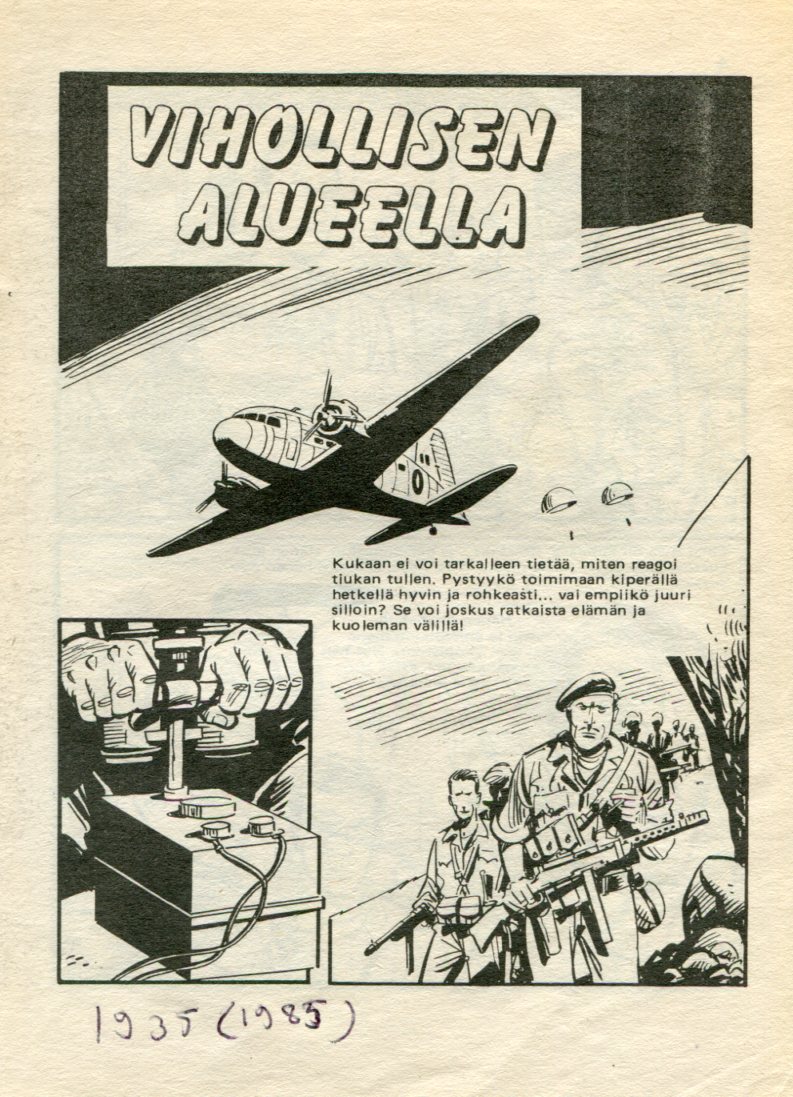 Korkeajännitys 191986sivu 3Vihollisen AlueellaKannen Piirtäjä:Ian KennedyVihollisen AlueellaAlkuperä: Commando 1935 (1985)In Enemy TerritoryPiirtäjä: NebotTeksti: Staff
