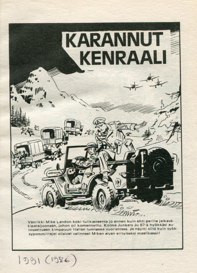 Korkeajännitys 241986sivu 3Karannut KenraaliKannen Piirtäjä:Ron BrownKarannut KenraaliAlkuperä: Commando 1991 (1986)Guns in the SnowPiirtäjä: NebotTeksti: R.A.Montague