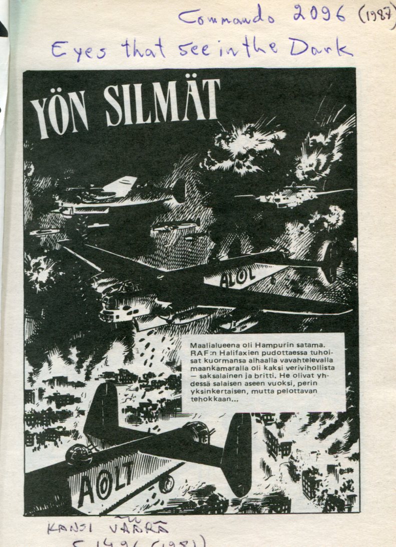 Yön Silmät Alkuperä: Commando 2096 (1987) Eyes that See in the Dark Piirtäjä: Benet Teksti: Alan Hebden