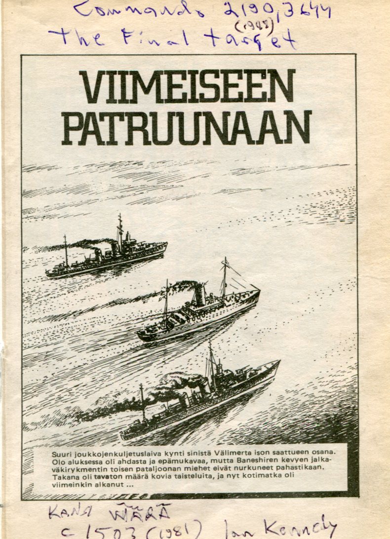 Viimeiseen Patruunaan Alkuperä: Commando 2190 (1988) The Final Target Piirtäjä: Blasco Teksti: C.G.Walker