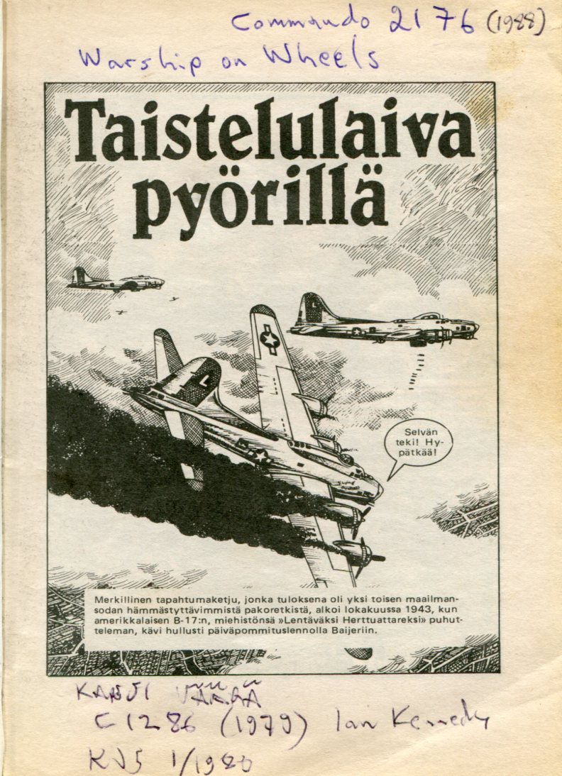 Taistelulaiva Pyörillä Alkuperä: Commando 2176 (1988) Warship on Wheels Piirtäjä: Denis McLoughlin Teksti: Alan Hebden