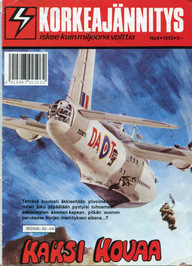 Korkeajännitys 41992Kaksi Kovaa (Kannessa)Kova Sakki (sivulla 3)Alkup kansiCommando 2504 (1991)Split-Second TimingPiirtäjä: Gordon Livingstone