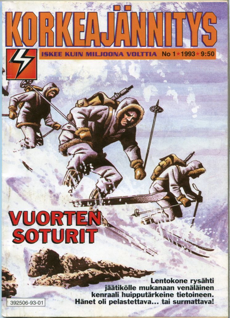Korkeajännitys 11993sivu 3Vuorten SoturitKannen Piirtäjä:Alan BurrowsAlkuperä: Commando 2559 (1992)Warriors of WildernessPiirtäjä: VilaTeksti: Alan Hemus
