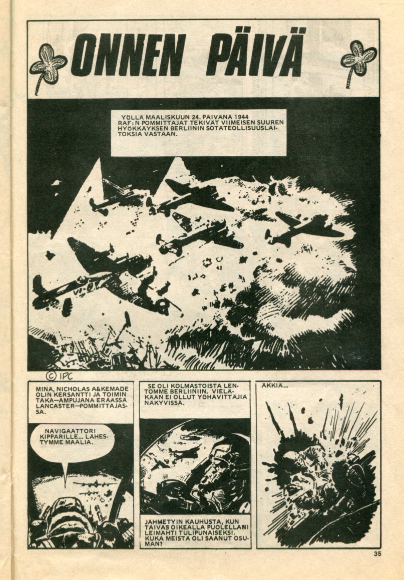 Vaarojen Miehet Alkup: War Ace Picture Library 187 (1963) The Bomber Barons (Uusinta AAPL 384 (1968) The Mailed Fist Kansi: Stefan Barany (Uusintakansi: Nino Caroselli) Piirtäjä: Nevio Zeccara Teksti: Julkaistu myös: Korkeajännitys 5 / 1967 Tuhopommittavat Paholaisparonit Siivet 8 / 1982 Rankaisija Rajan Takaa