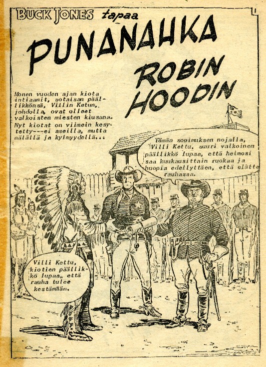 a) Buck Jones tapaa Punanahka Robin Hoodin 53 sivua Buck Jones Meets Lone Wolf the Redskin Robin Hood Piirtäjä: R.Charles Roylance