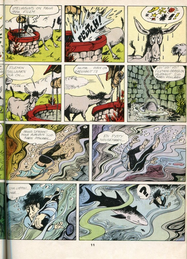 Filemon 21974sivu 11FilemonjaA:n HaaksirikkoinenPhilémon et le naufragé du "A"Piirtäjä: FredTeksti: FredKustantaja: Otava