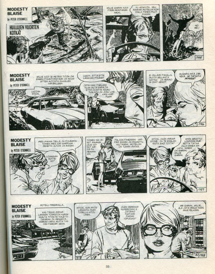 sivu 33 Modesty Blaise Hullujen Vuorten Kotkat The Hell Makers (1969) Piirtäjät: Jim Holdaway Teksti: Peter O'Donnell