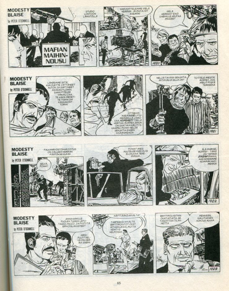 sivu 65 Modesty Blaise Mafian Maihinnousu Take-Over (1970) Piirtäjä: Jim Holdaway Teksti: Peter O'Donnell