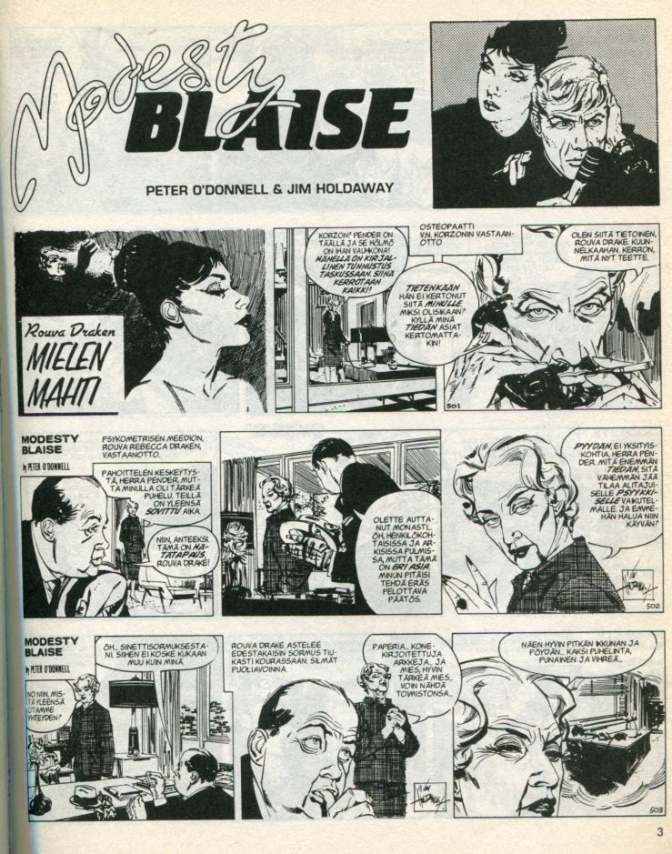 sivu 3 Modesty Blaise Rouva Draken Mielen Mahti The Mind of Mrs.Drake (1965) Piirtäjä: Jim Holdaway Teksti: Peter O'Donnell