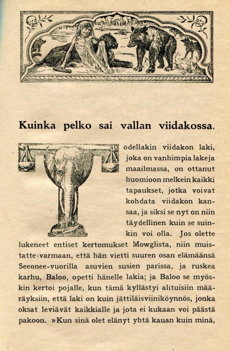 Intian Viidakoista II1948kolmas PainosThe Second Jungle Book (1895)Kirjailija: Rudyard KiplingKansi: Kuvittaja: John Lockwood Kipling (Rudyarin isä)Suomentaja: Helmi KrohnKustantaja: OtavaSarja: Nuorten Kirjoja