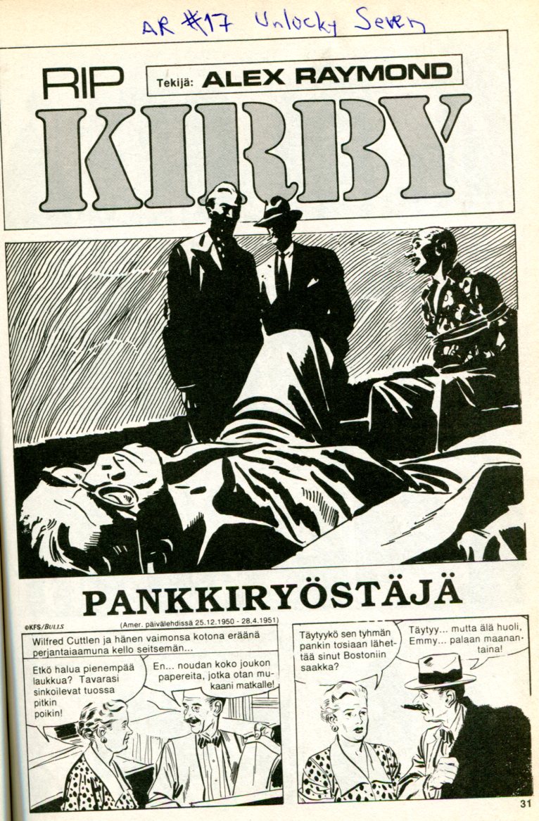 sivu 31 Rip Kirby Pankkiryöstäjä Rip Kirby 17 Unlucky Seven (1950 - 1951) piirtäjä: Alex Raymond teksti: Alex Raymond