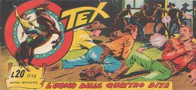 ... jatkoa edellisestä numerosta Nelisorminen Mies L'uomo dalle Quattro Dita (1957) Piirtäjä: Galep Teksti: Bonelli