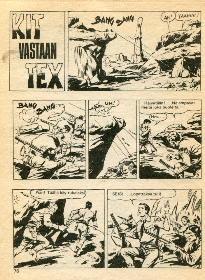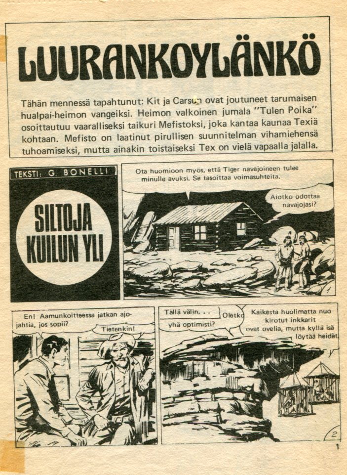 Tex Willer 51974Kansi: Galep... jatkoa edellisestä numerostaLuurankoylänköLa Mesa degli Scheletri (1958)Piirtäjä: GalepTeksti: Bonellijatkuu seuraavassa numerossa...