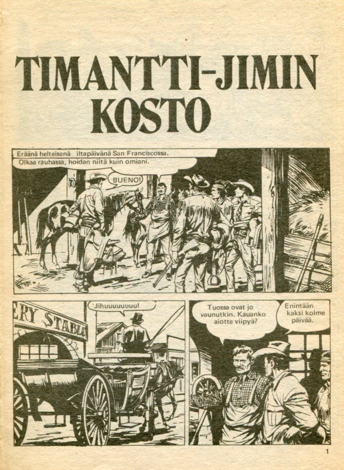... jatkoa edellisestä numerosta Timantti-Jimin Kosto (San Francisco, Taistelu Merellä, Saaren Tyranni, Pääkallonmetsästäjät - 436 sivua) La Vendetta di Diamond-Jim (1973) Piirtäjä: Galep Teksti: Bonelli jatkuu seuraavassa numerossa...