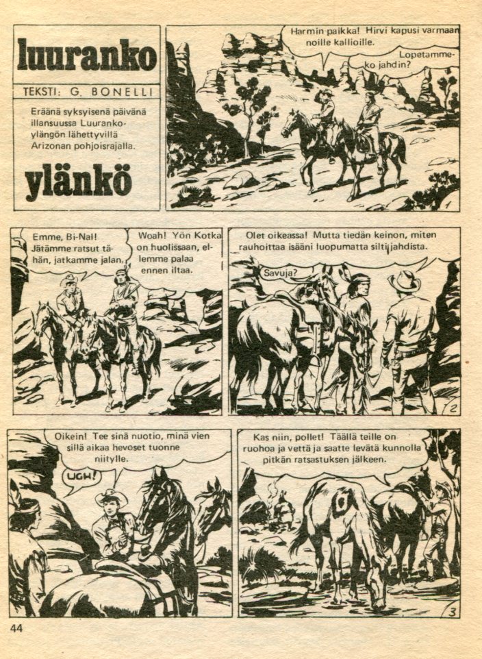 sivu 44 Luurankoylänkö La Mesa degli Scheletri (1958) Piirtäjä: Galep Teksti: Bonelli jatkuu seuraavassa numerossa...