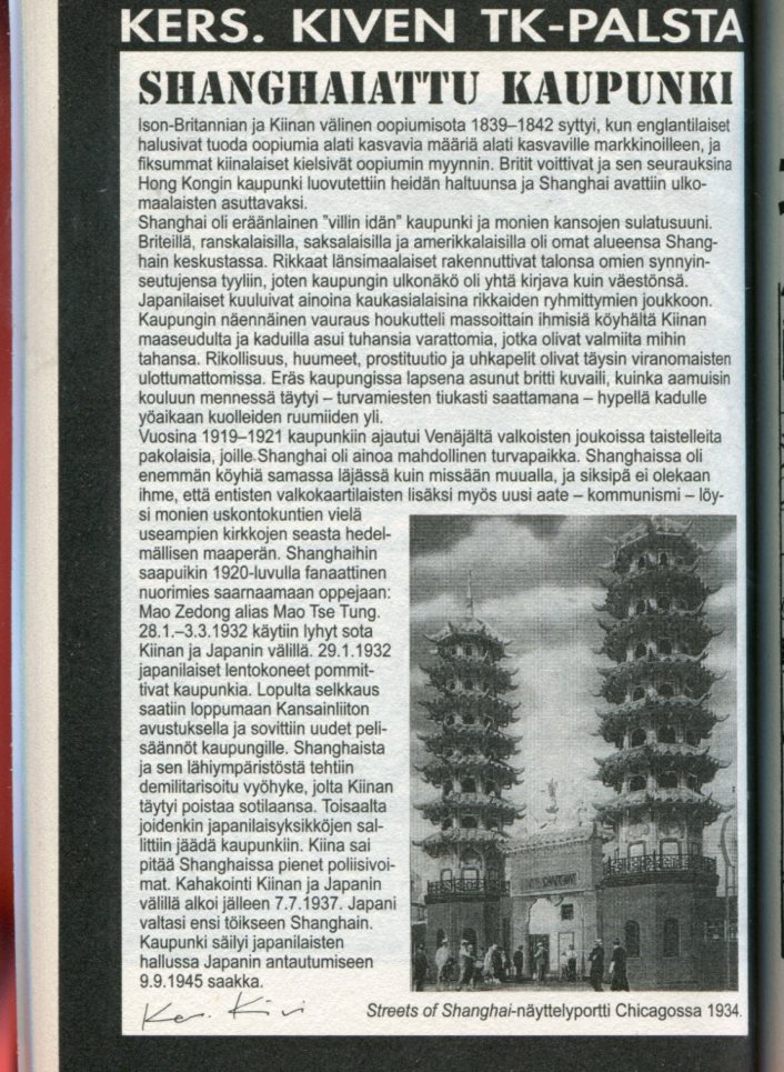 sivu 68 Tietoisku Shanghaiattu Kaupunki Laatinut: Reservin Alikersantti M.Konttinen
