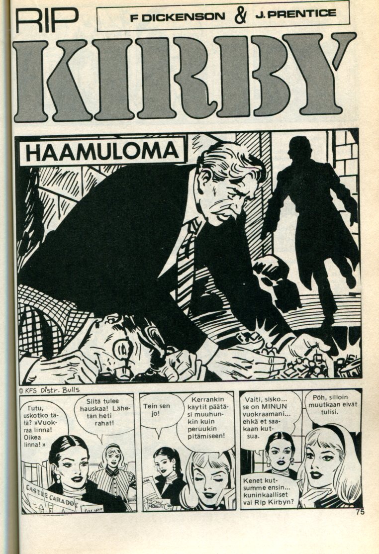 sivu 75 Rip Kirby Haamuloma piirtäjä: J.Prentice teksti: F.Dickenson
