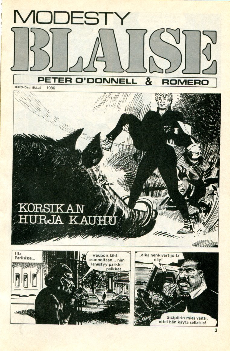 sivu 03 Modesty Blaise Korsikan Hurja Kauhu piirtäjä: Romero teksti: Peter O'Donnell