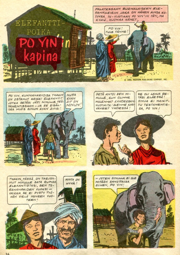 Elefanttipoika Po Yin'in Kapina 4 sivua The Elephant Boy Po Yin Rebels Piirtäjä: Bob Fujitani Teksti: Gaylord Du Bois