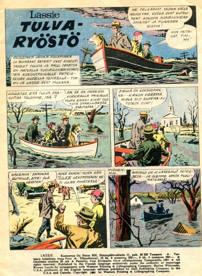 Lassie Tulvaryöstö 13 sivua The Highwater Robbery Piirtäjä: Bob Fujitani Teksti: Gaylord Du Bois